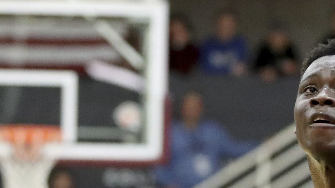 Alex Antetokounmpo en acción, conduciendo contra Bronny James durante un partido de baloncesto de escuela secundaria. Crédito: Gregory Payan | AP