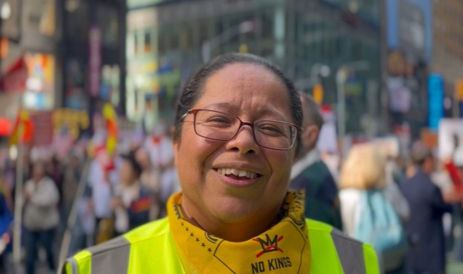 “Como cuidadores de primera línea, los 450,000 miembros de 1199SEIU haremos todo lo posible para proteger a nuestros pacientes y su acceso a una atención de calidad”, dijo Veronica Turner-Biggs, secretaria tesorera de 1199SEIU, el sindicato de trabajadores de la salud más grande de Nueva York y uno de los participantes en la protesta. “Como profesionales de la salud, tenemos el deber de salvar vidas, y salimos a las calles para exigir a nuestro gobierno que priorice la vida de nuestros pacientes, nuestros vecinos y nuestras comunidades, en lugar de enviar a ICE y al ejército a nuestras calles”.