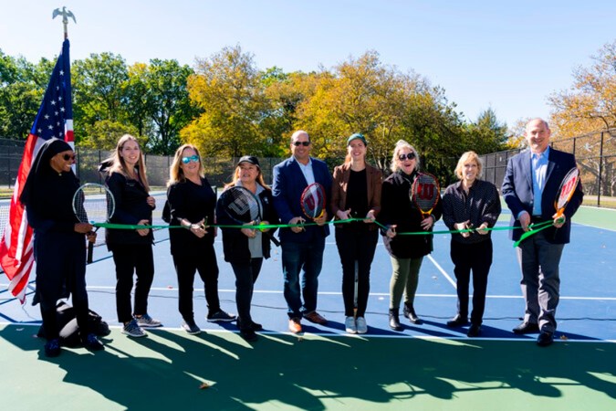 La Comisionada de Parques, Iris Rodríguez-Rosa, se unió a líderes de USTA, la asambleísta Nily Rozic y miembros de la comunidad de Queens para celebrar la finalización de la renovación de las canchas de tenis.