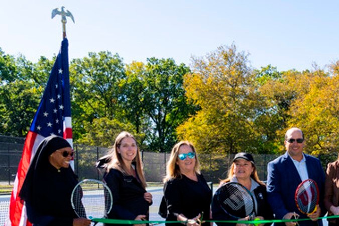 La Comisionada de Parques, Iris Rodríguez-Rosa, se unió a líderes de USTA, la asambleísta Nily Rozic y miembros de la comunidad de Queens para celebrar la finalización de la renovación de las canchas de tenis.