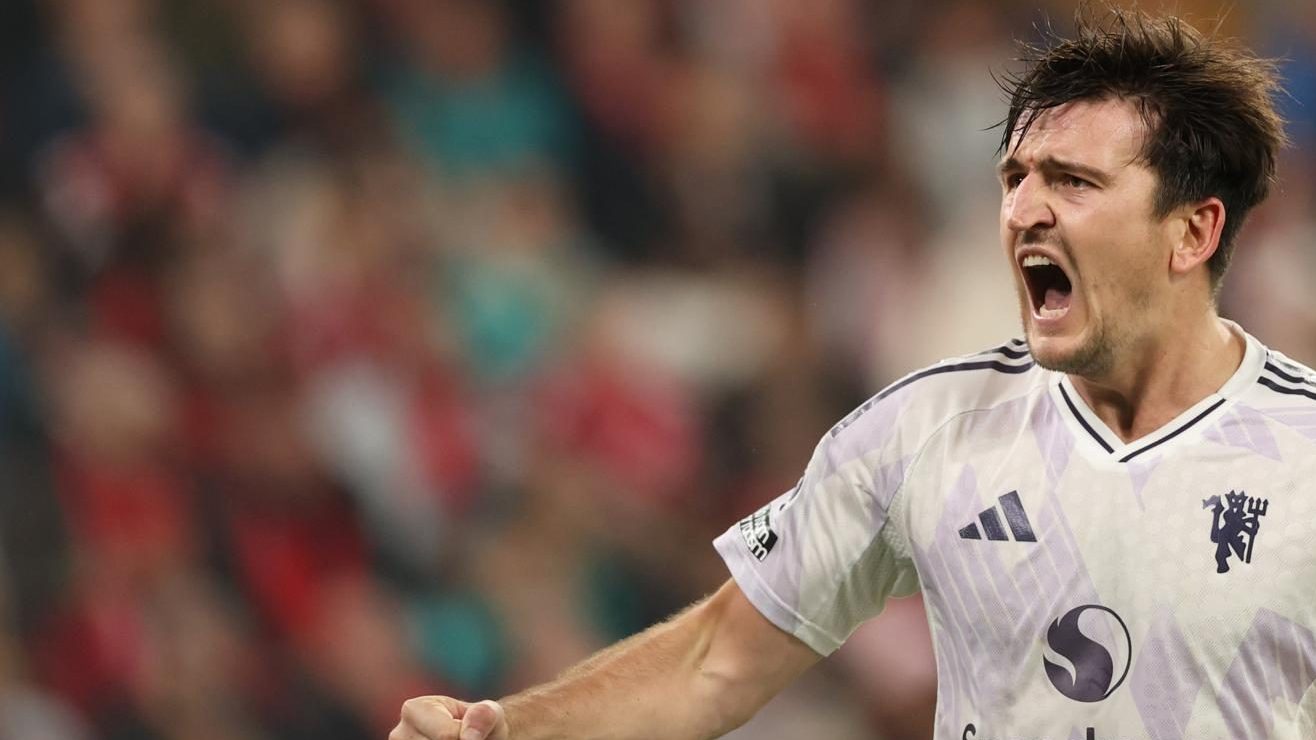 Harry Maguire del Manchester United celebra el gol 1-2 durante el partido de la Premier League inglesa entre el Liverpool FC y el Manchester United, en Liverpool, Gran Bretaña, el 19 de octubre de 2025.