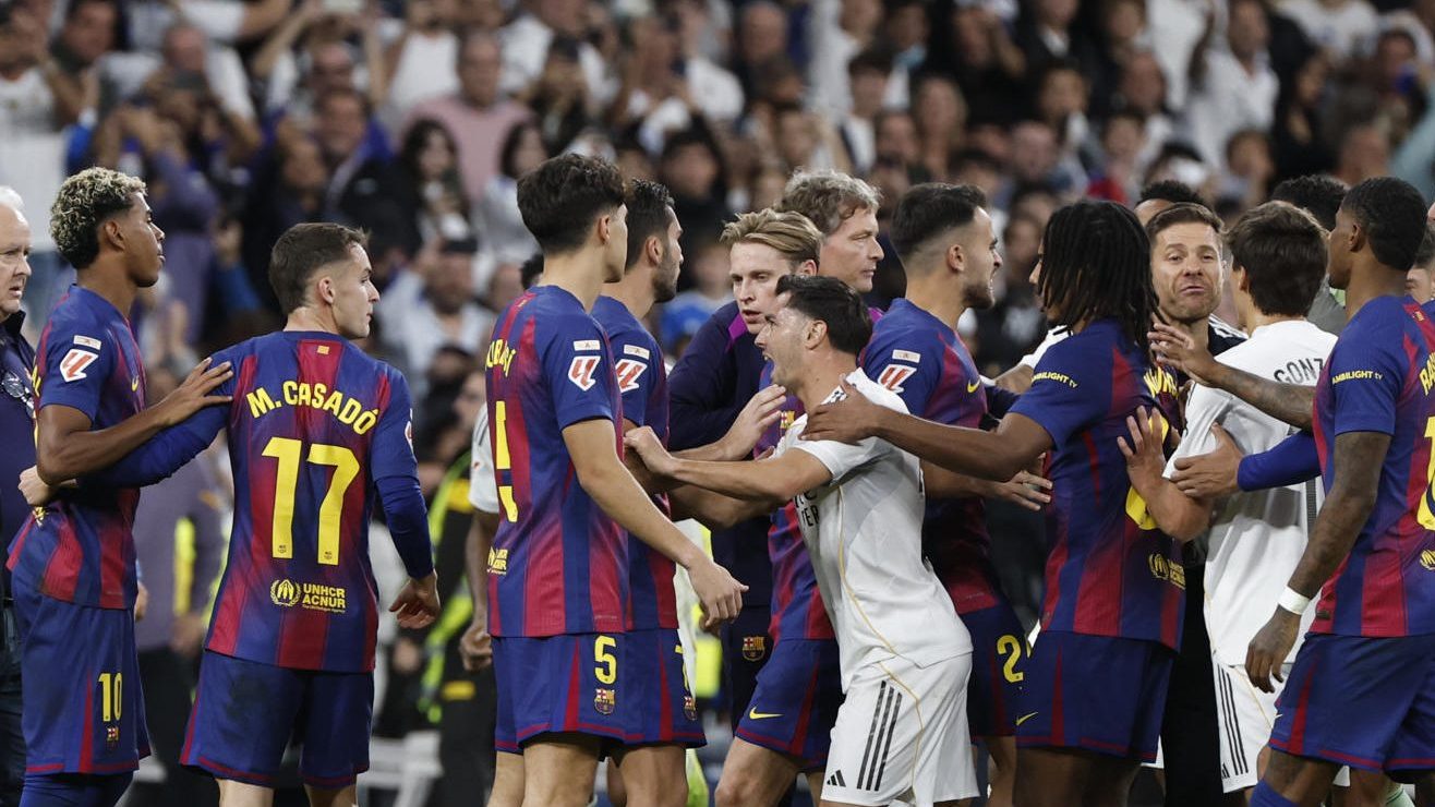El joven del Barcelona discutió con el lateral del Real Madrid luego del pitazo final, en medio de un clima tenso que involucró a varios jugadores