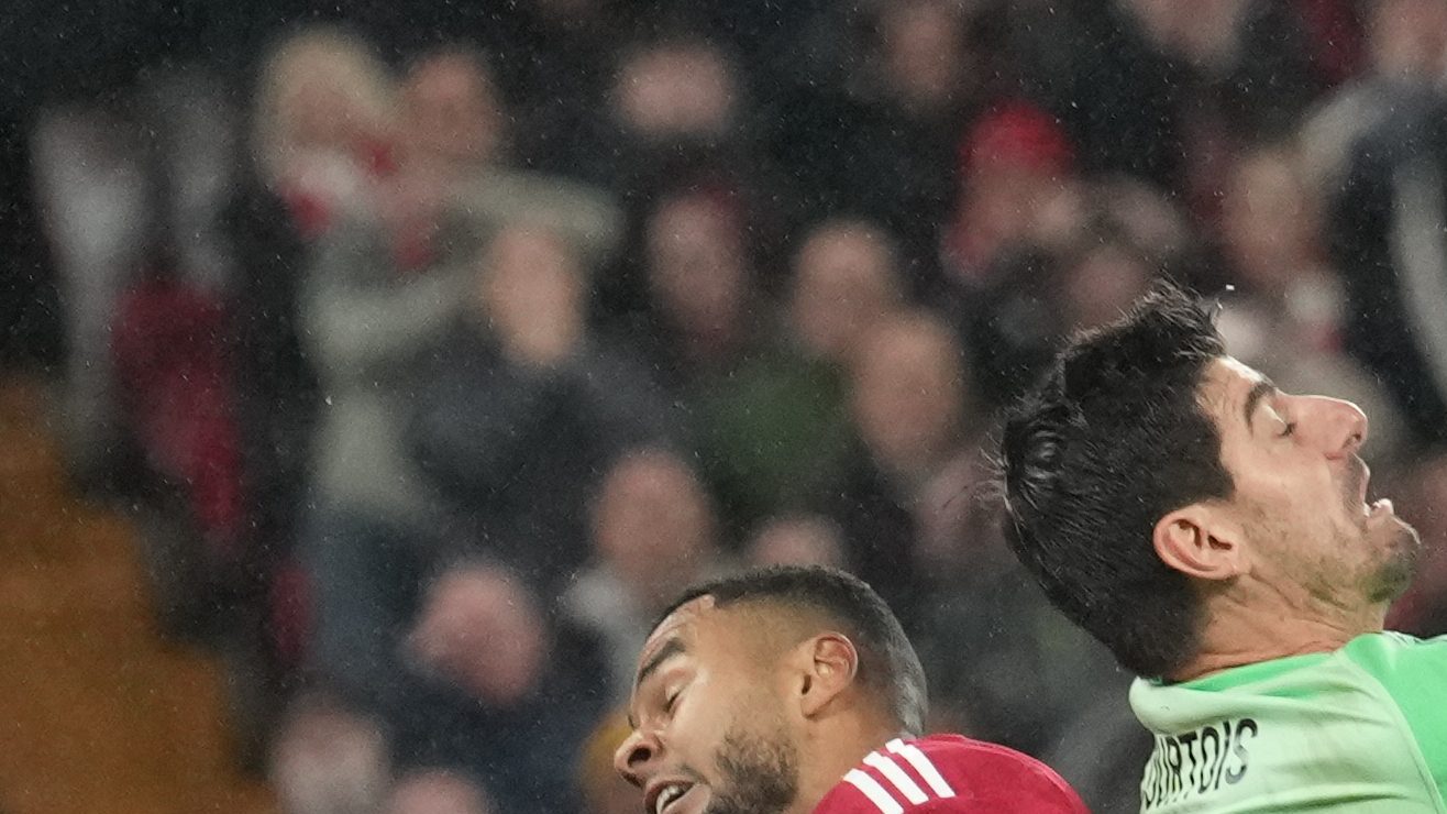 El portero belga fue la figura de los visitantes y el responsable de que la primera mitad terminara sin goles. Courtois atajó con el botín un mano a mano a Szoboszlai al minuto 28.