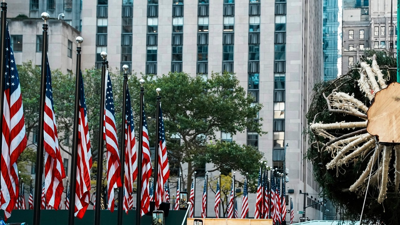Ya en el 30 Rockefeller Plaza, grúas y equipos de trabajadores lo izaron frente a la famosa pista de patinaje, mientras decenas de personas se congregaban para presenciar el momento, sin importar las lluvias.