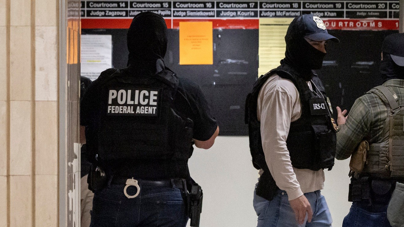 Agentes federales en operación de arrestos en una corte migratoria en Nueva York. Crédito: Yuki Iwamura | AP