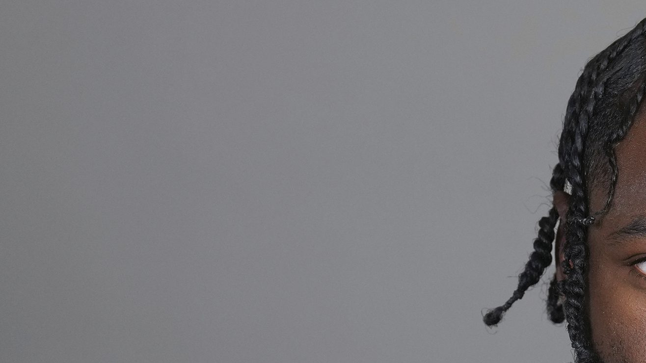 En las imágenes aparece un hombre afrodescendiente con una gorra negra, sudadera y pantalón a juego con zapatillas multicolor y una mochila negra.