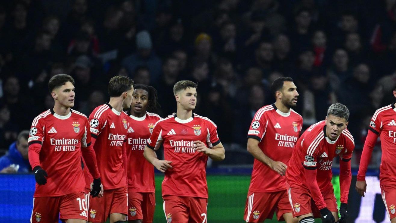 Los jugadores del Benfica celebran el 0-1 durante el partido de la Liga de Campeones de la UEFA entre el AFC Ajax y el SL Benfica en el Johan Cruijff ArenA en Ámsterdam, Países Bajos, el 25 de noviembre de 2025. Crédito: Olaf Kraak | EFE