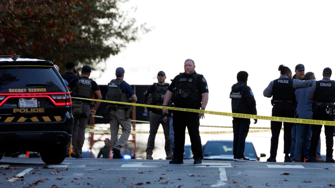 Agentes del orden se encuentran cerca del lugar donde dos miembros de la Guardia Nacional de Virginia Occidental fueron baleados en Washington, D.C., EE. UU., el 26 de noviembre de 2025. Crédito: EPA/WILL OLIVER | EFE