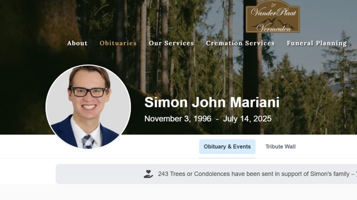 Según su obituario, Simon John Mariani se graduó de la Universidad de Notre Dame en 2019 con títulos en contabilidad y economía, y posteriormente obtuvo su certificación de CPA. Trabajó durante tres años en PricewaterhouseCoopers. Regresó a Notre Dame y completó una maestría en finanzas en 2024. Recientemente, trabajó como asociado en MTS Health Partners en la ciudad de Nueva York, donde sus compañeros lo describieron como una persona trabajadora, inteligente y muy apreciada.