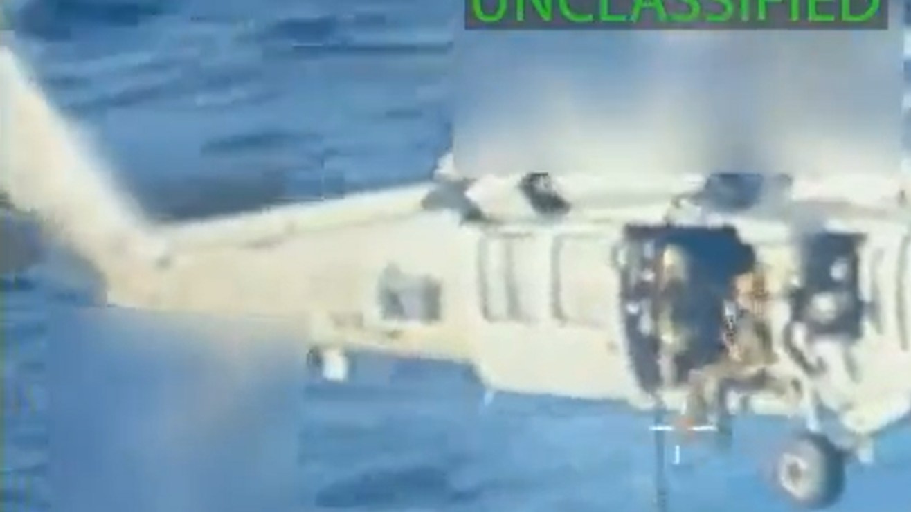El video muestra a un helicóptero del ejército estadounidense sobre el buque, mientras militares armados toman la embarcación.