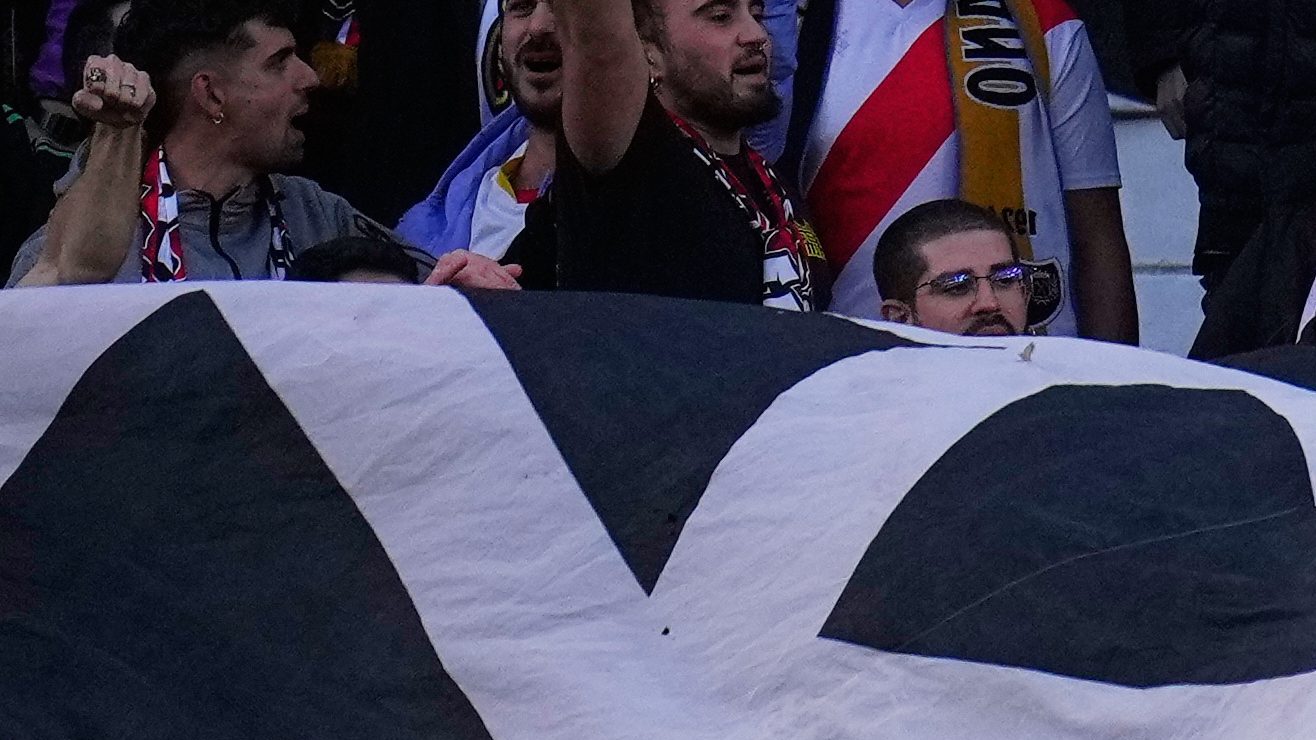 Los aficionados del Rayo Vallecano reaccionan mientras ven un partido de fútbol de la Liga española entre el Rayo Vallecano y el Real Madrid en Madrid, España, el domingo 9 de noviembre de 2025. Crédito: Manu Fernandez | AP