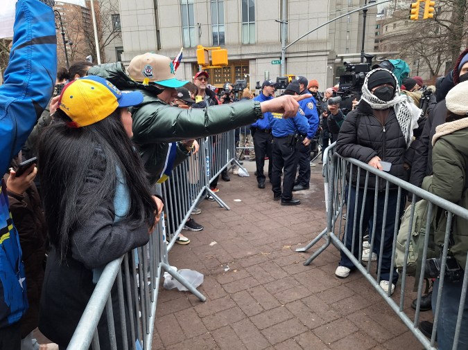 En los alrededores del edificio Daniel Patrick Moynihan que alberga la Corte del Distrito Sur de Nueva York, en el Bajo Manhattan, no había espacio para más cámaras de televisión. Pero tampoco para más tensión, más polarización, más gritos y cruces discursivos, en medio de confrontaciones que ameritaron la intervención del Departamento de Policía de la Ciudad de Nueva York (NYPD).