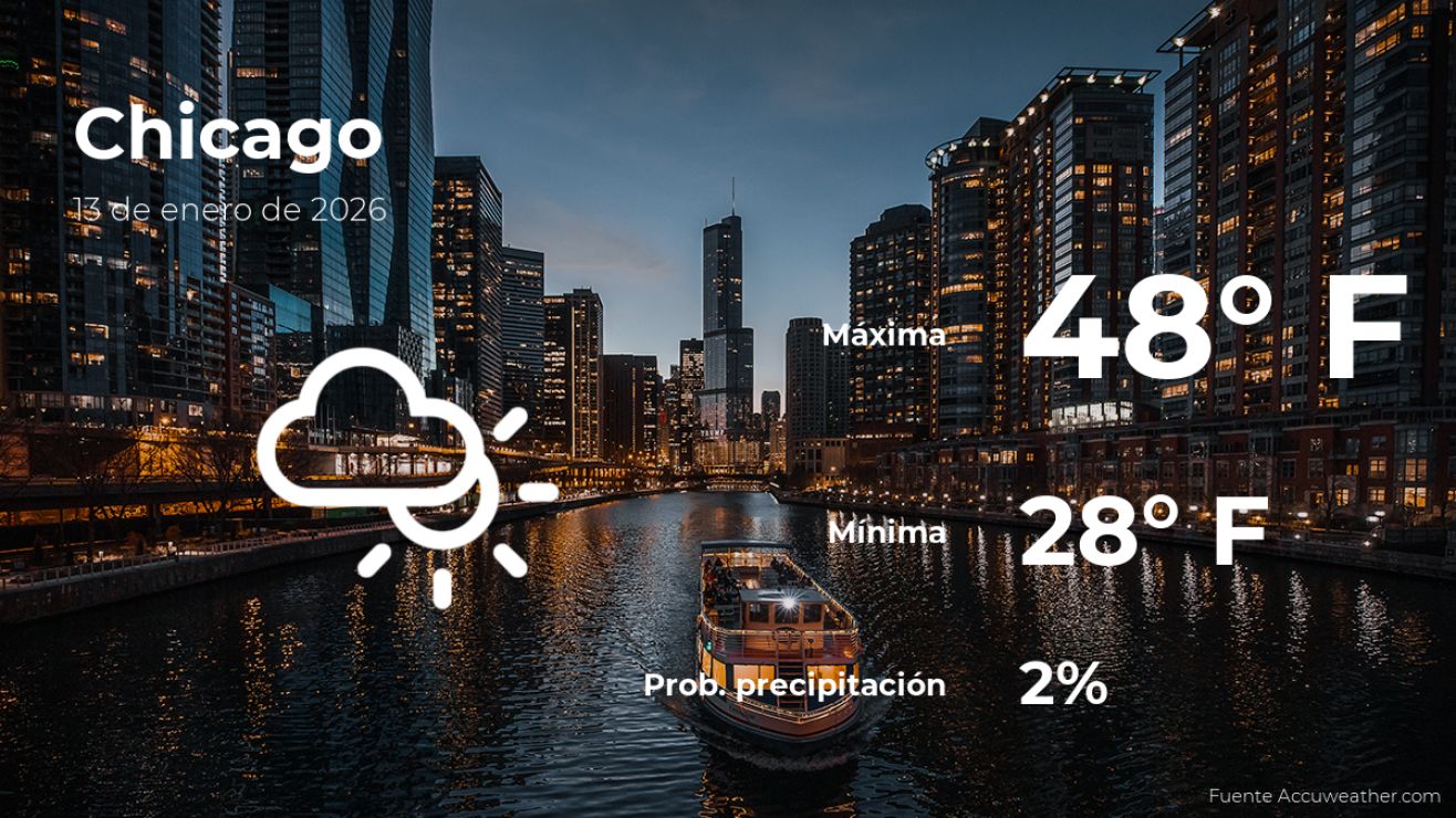 Conoce cómo estará el tiempo en Chicago, para hoy martes 13 de enero. Antes de salir de tu casa, descubre el pronóstico meteorológico y las condiciones climáticas más relevantes para este día.