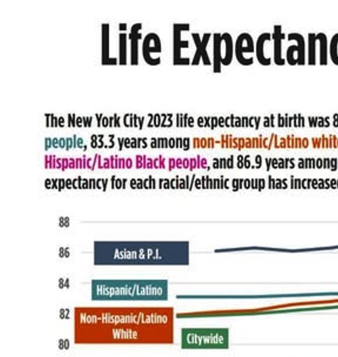 Aunque los datos indican avances en la salud de los neoyorquinos, la menor esperanza de vida entre los neoyorquinos negros sigue siendo motivo de preocupación: este grupo reportó la menor esperanza de vida (78.3 años) entre los grupos raciales o étnicos, mientras que la de los neoyorquinos blancos fue de 83.3 años y la de los latinos 82.8. Mientras los neoyorquinos de origen asiático e isleño del Pacífico superaron a todos los demás grupos raciales/étnicos, con una media 86.9 años.