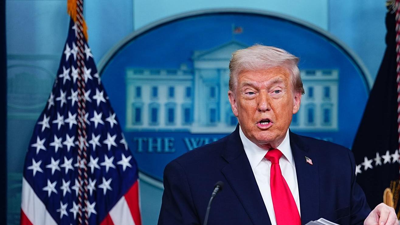 El presidente de Estados Unidos, Donald J. Trump, habla durante su participación en la rueda de prensa de la Casa Blanca en la Sala de Prensa James S. Brady, en Washington, D.C., el 20 de enero de 2026.