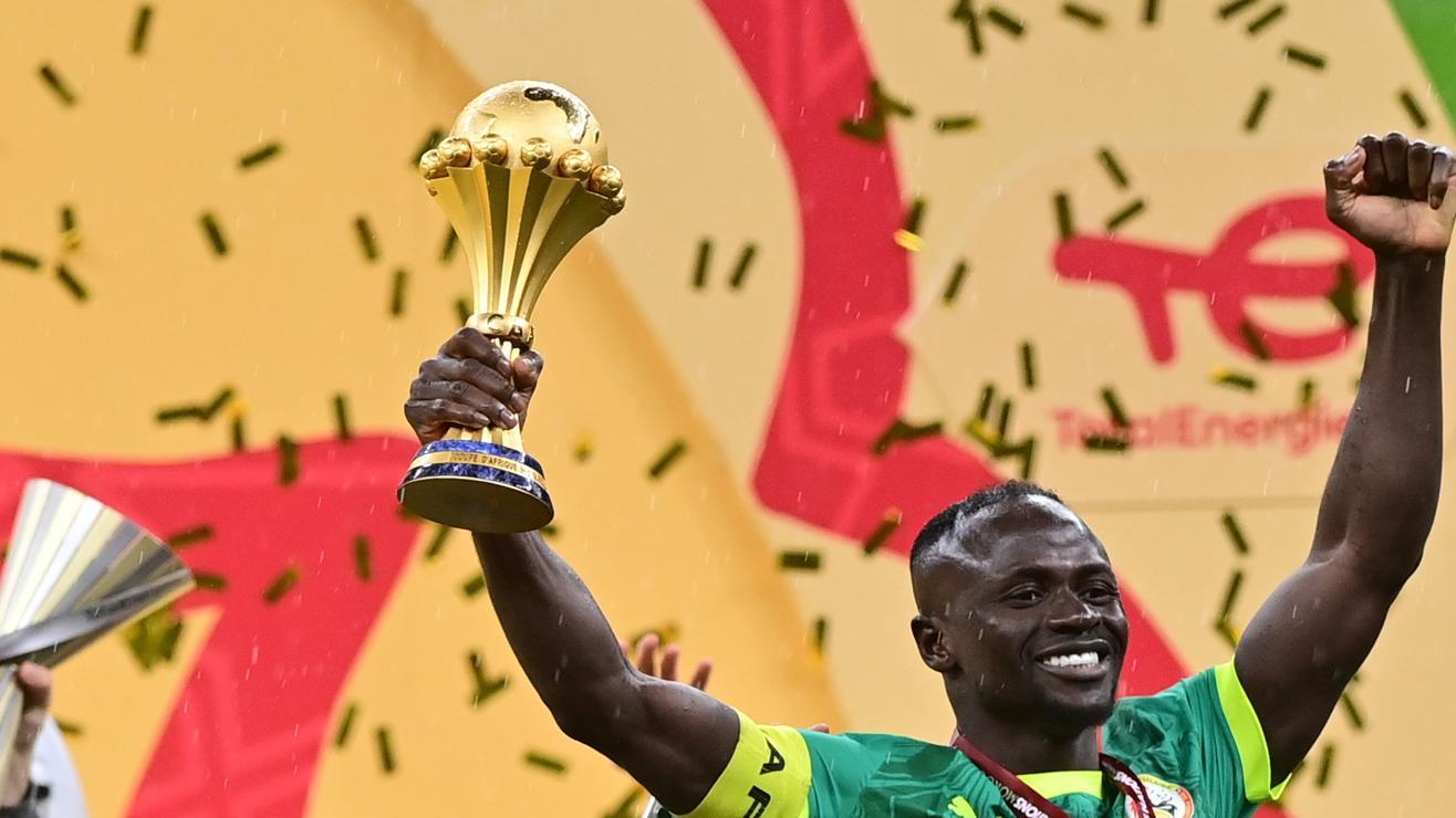 Sadio Mané celebra tras levantar la Copa Africana de Naciones. Crédito: JALAL MORCHIDI | EFE
