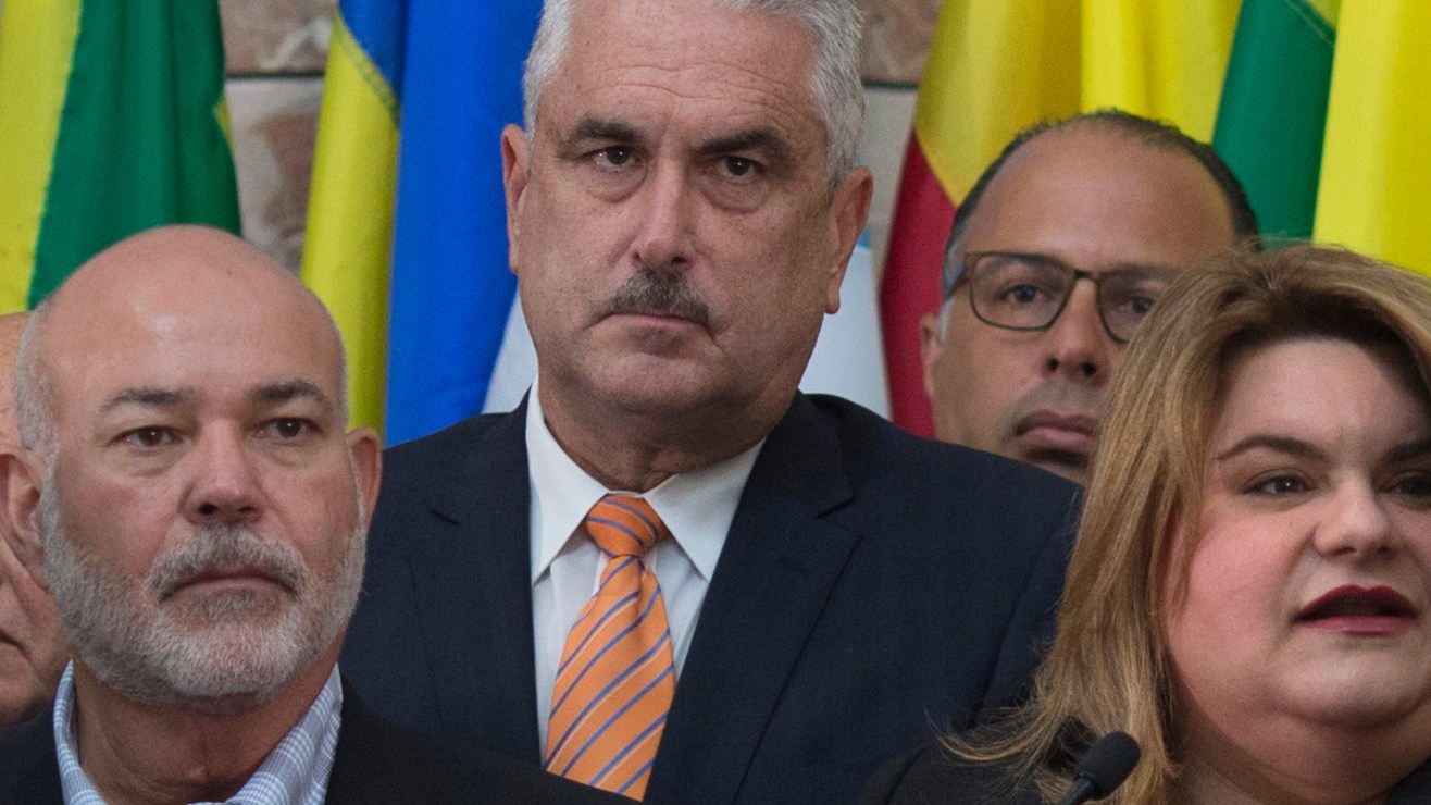 De izquierda a derecha, el presidente de la Cámara de Representantes de Puerto Rico, Carlos "Johnny" Mendez; su homólogo en el Senado, Thomas Rivera Schatz y la gobernadora Jenniffer González.  Crédito: Archivo /Dennis M. Rivera Pichardo | AP