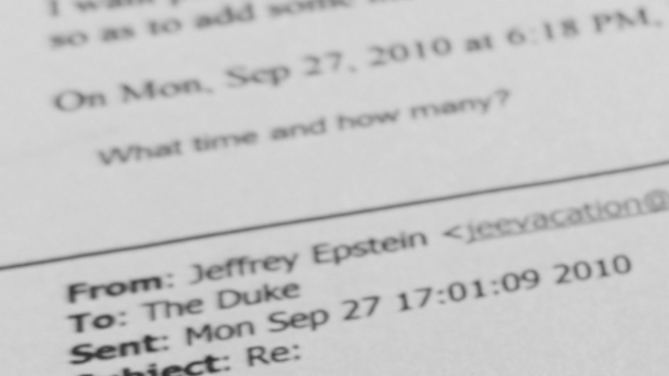 Un documento que muestra un intercambio de correos electrónicos entre Jeffrey Epstein y Andrew Mountbatten-Windsor, anteriormente conocido como el príncipe Andrés. Crédito: Jon Elswick | AP