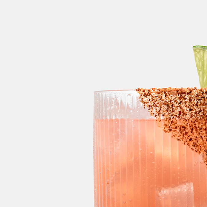 Preparación: Escarchar la mitad del vaso highball con sal y la otra mitad con sal y chile. Llenar con hielo y añadir el tequila y un toque de limón.