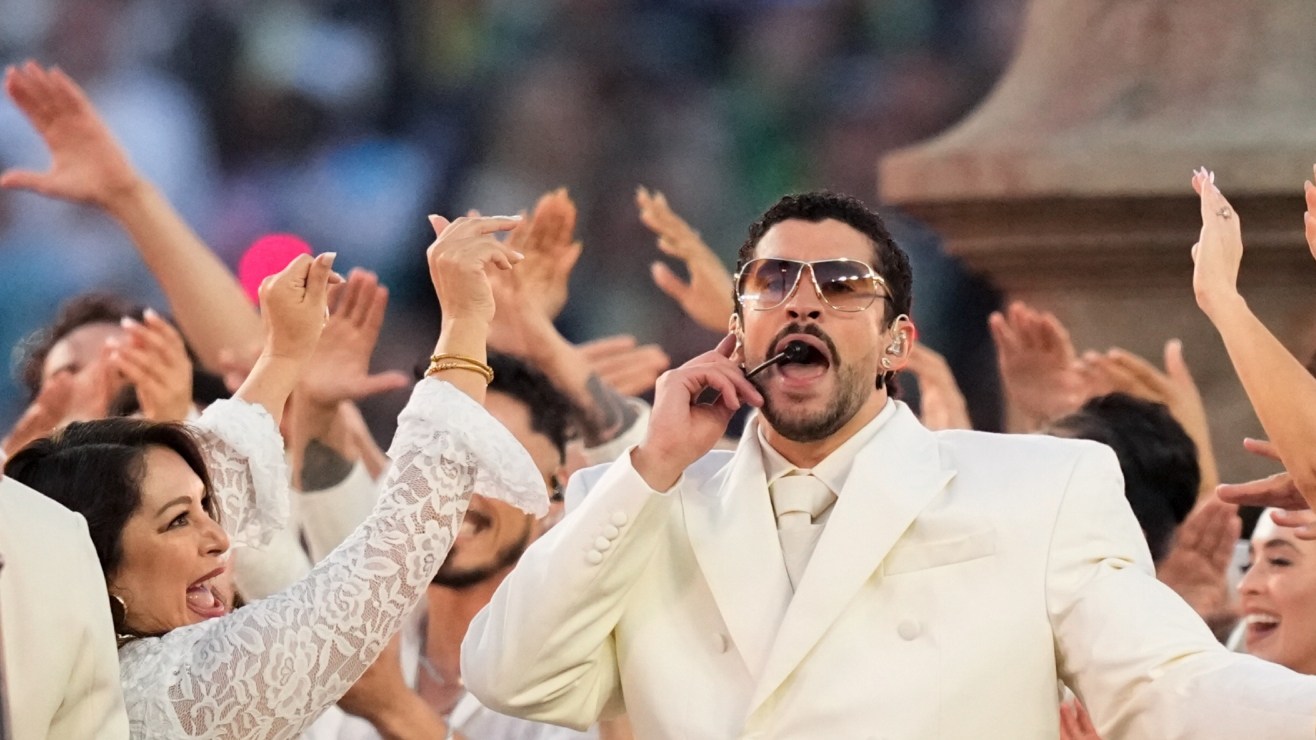 Bad Bunny en su presentación del Super Bowl LX. Crédito: Julio Cortés | AP