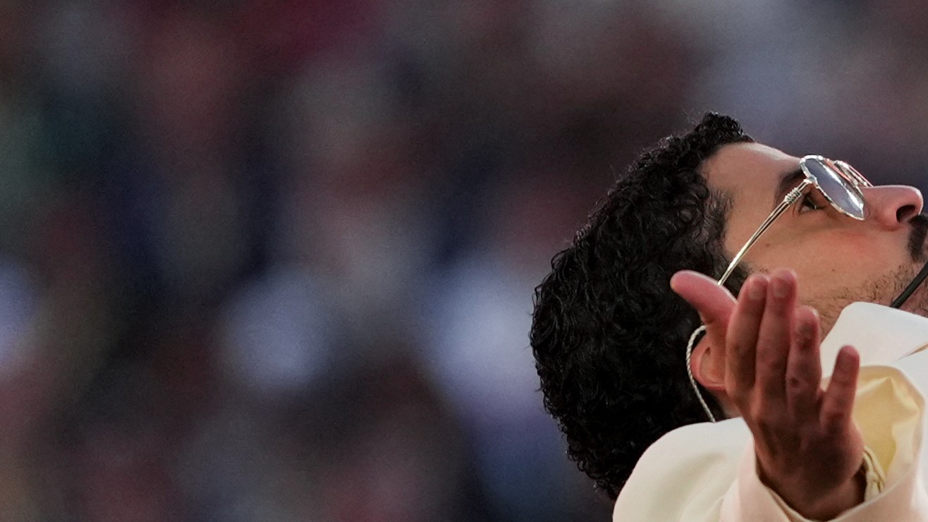 Bad Bunny performs during halftime of the NFL Super Bowl 60 football game between the New England Patriots and the Seattle Seahawks, Sunday, Feb. 8, 2026, in Santa Clara, Calif. (AP Photo/Matt Slocum) Crédito: AP
