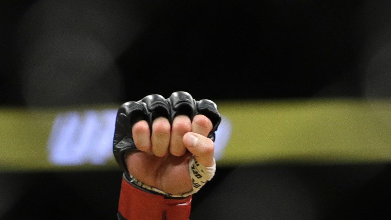 Caín Velásquez celebra tras derrotar a Travis Browne durante su combate de peso pesado de artes marciales mixtas en el UFC. Crédito: John Locher | AP