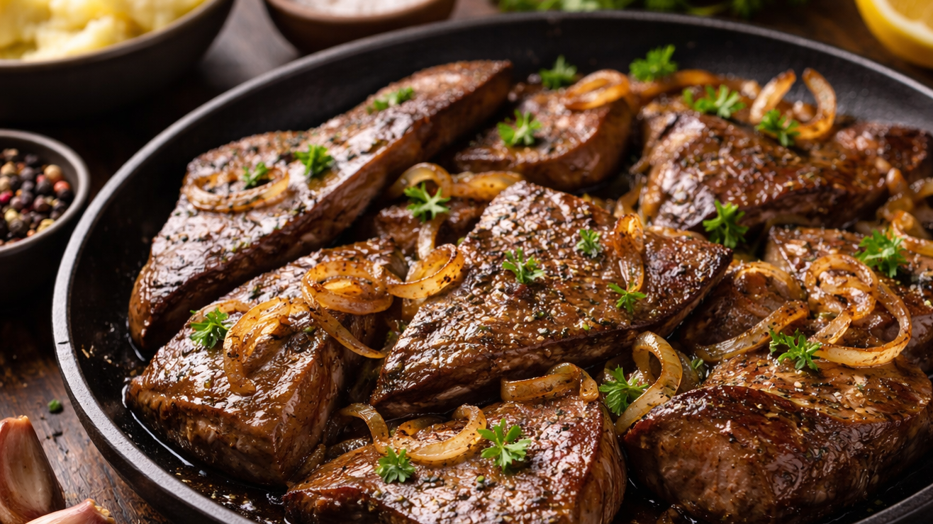 El hígado es una de las fuentes más ricas en hierro y vitamina B12, y puede prepararse de forma simple para que quede tierno y sabroso. Crédito: Imagen creada con AI | Impremedia