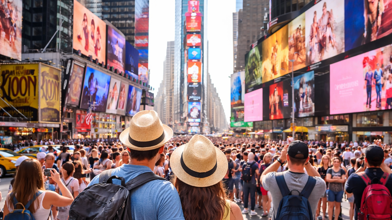Times Square es uno de los lugares más visitados del mundo y recibe más de 50 millones de turistas cada año. Crédito: Imagen creada con IA / Georgina Elustondo | Impremedia