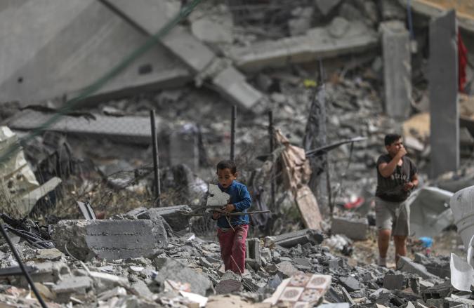Un palestino mira los escombros tras regresar al campo de refugiados de Al Nusairat tras la retirada del ejército israelí de la zona Crédito: MOHAMMED SABER | EFE