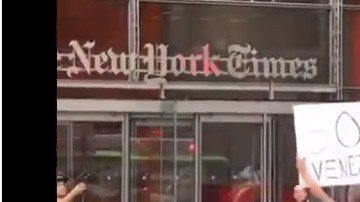 Nudista protesta frente al NY Times pidiendo auxilio por crisis en Venezuela por El Diario 15 de Septiembre de 2018
